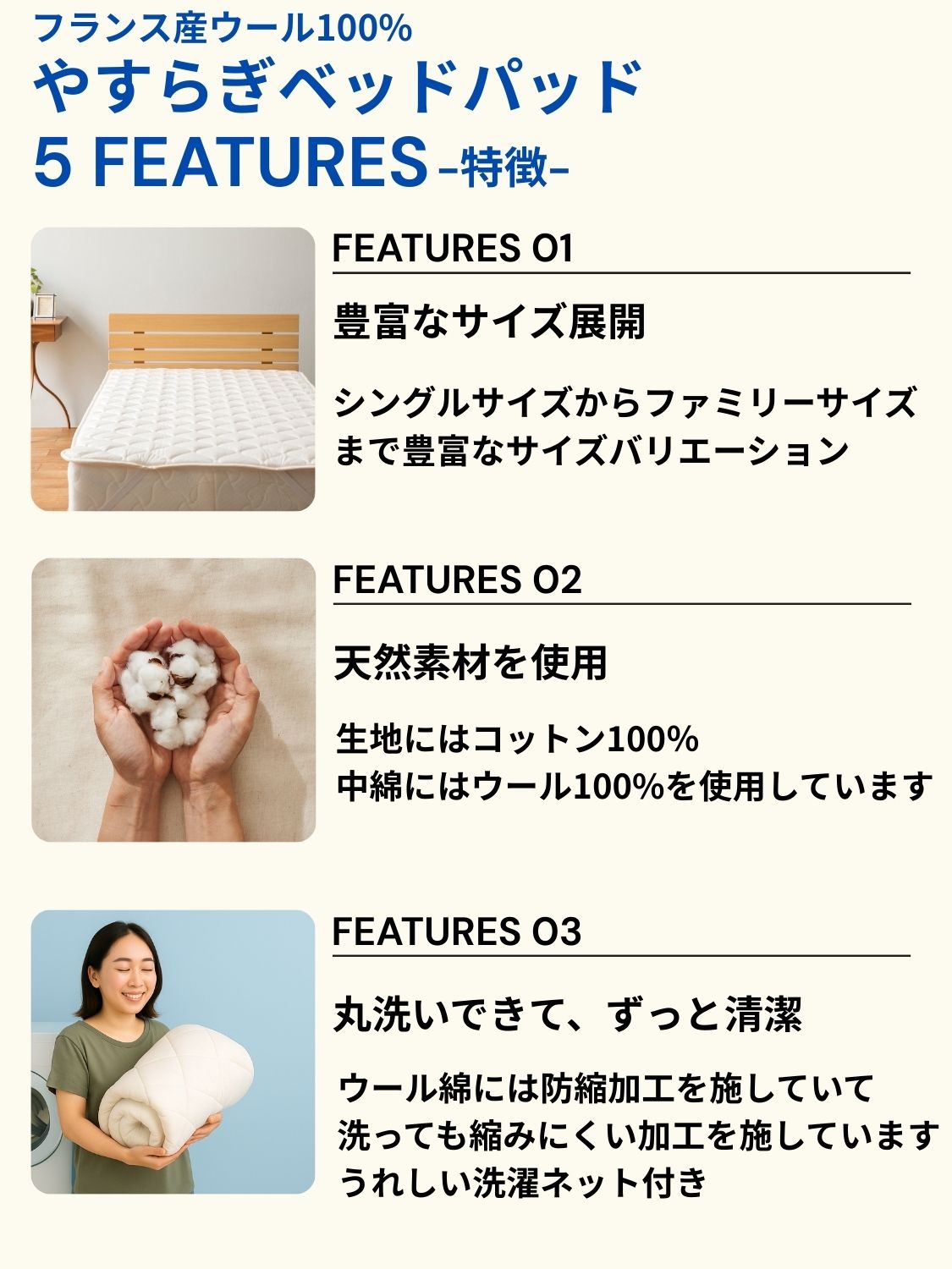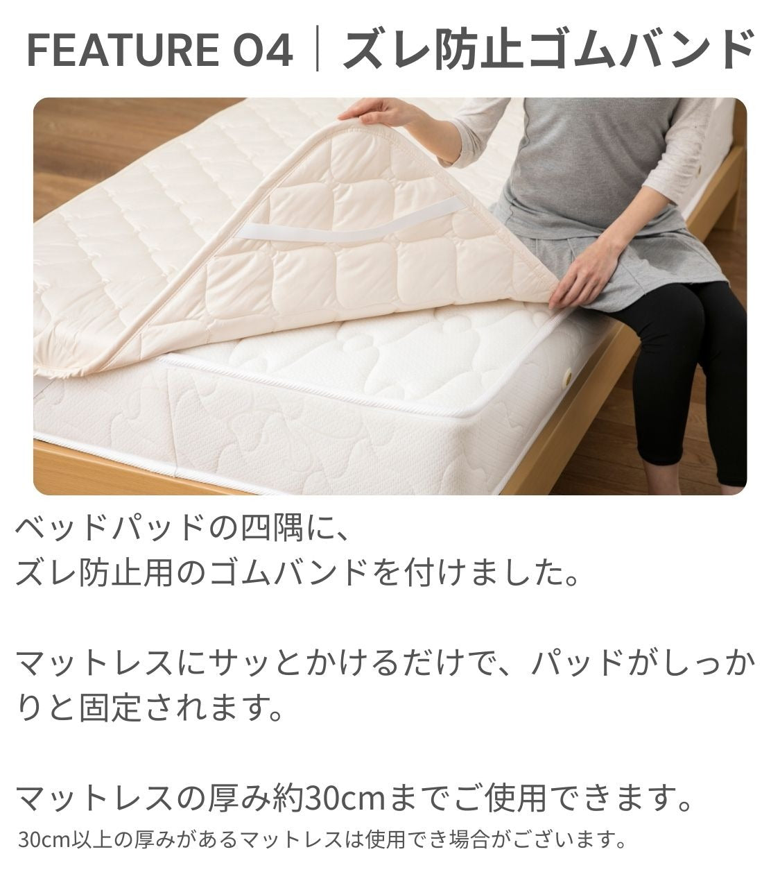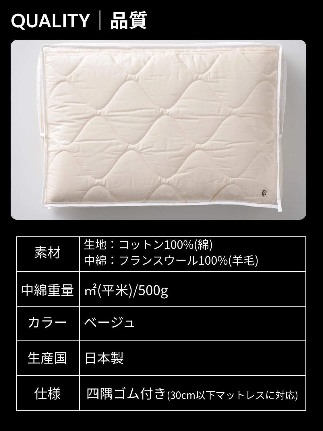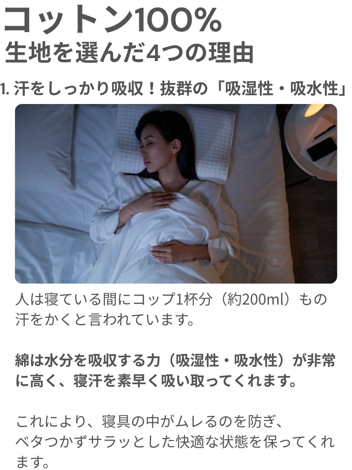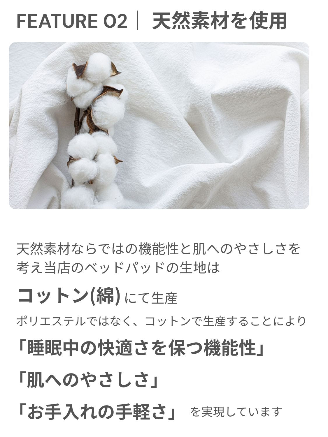綿100%生地なので使用自体は可能ですが、おすすめはしません。皮脂や汗が直接触れるため洗濯頻度が増え、製品への負荷が高まります。清潔を保ちつつ長く使うために、ボックスシーツやフラットシーツの併用を推奨します(お手入れ状況により一般的な目安は3〜5年)。