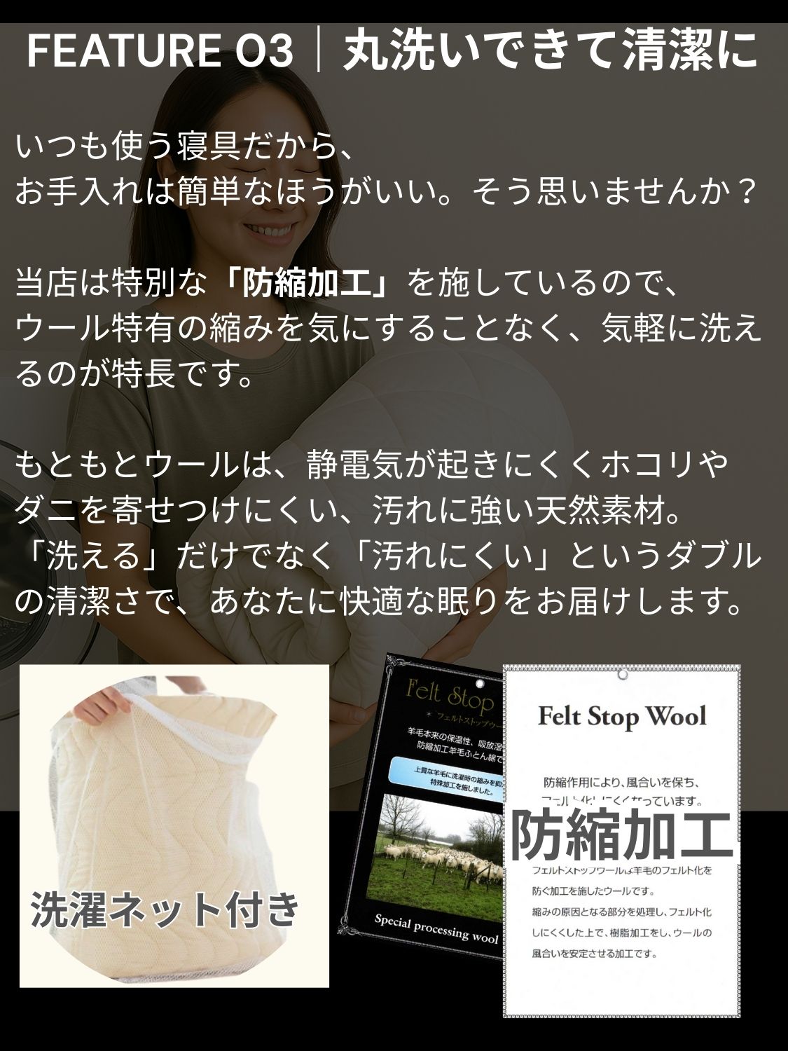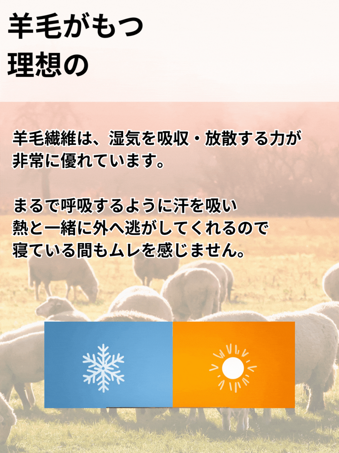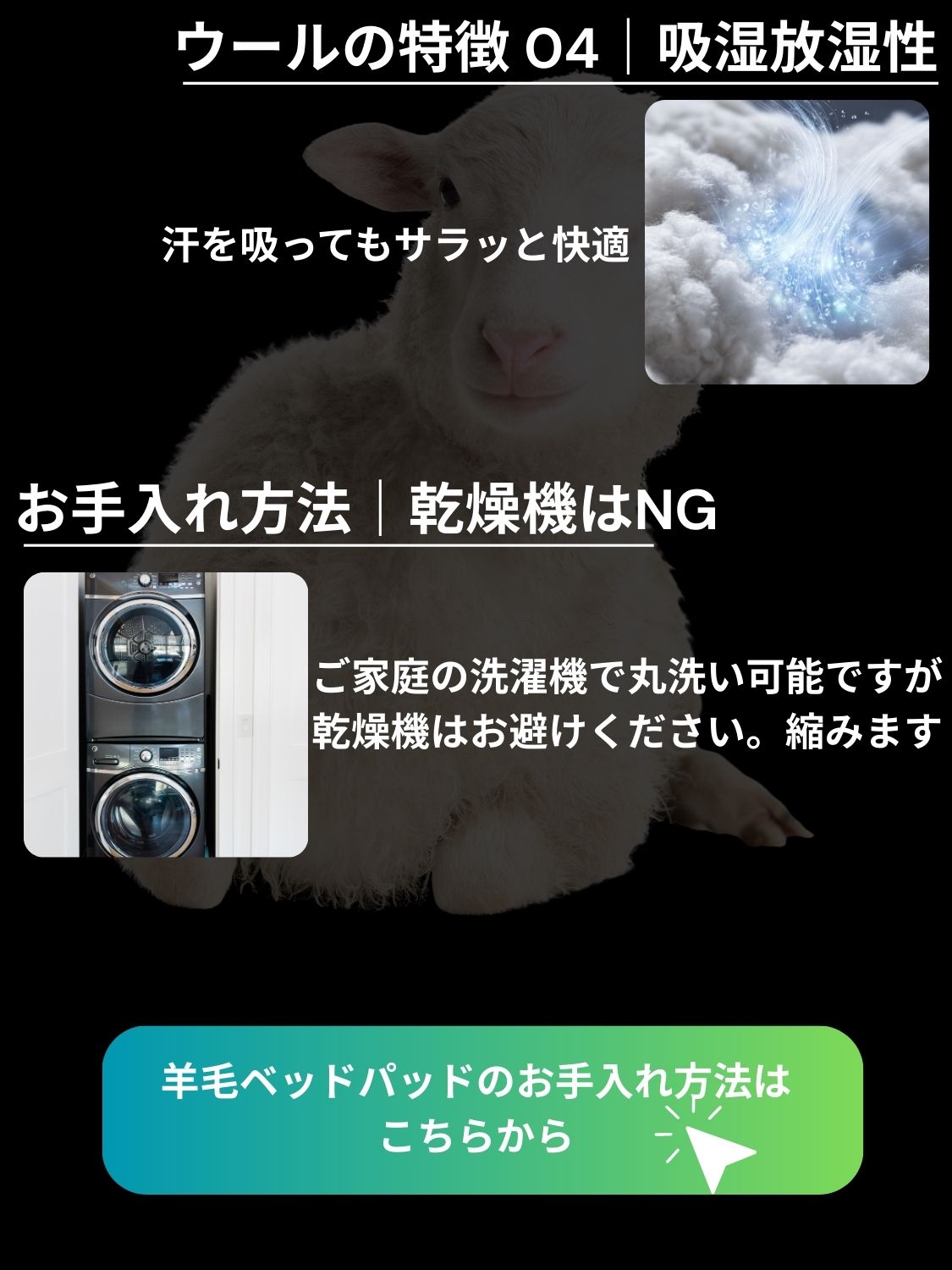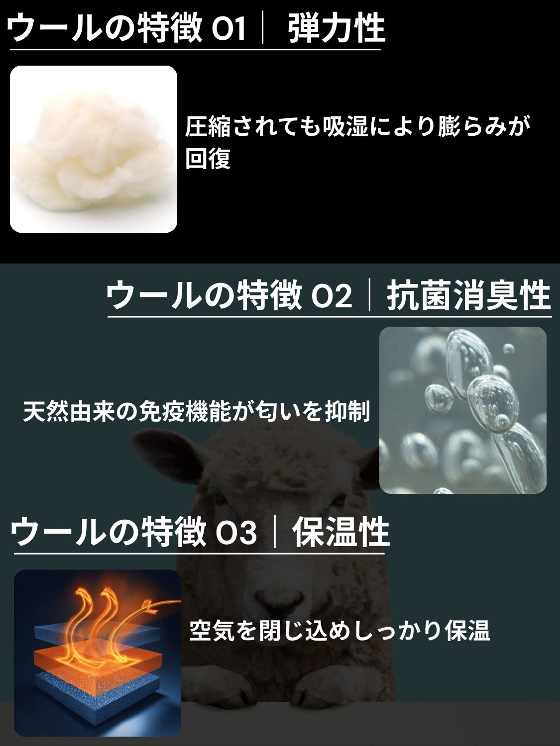 衛生リスク(湿度×ダニ・カビ)を抑制 - 羊毛の吸放湿性を守るべく、